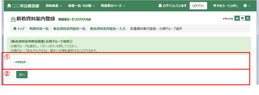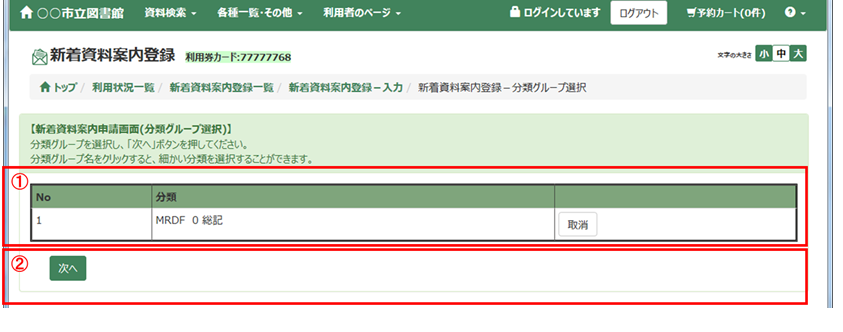 <分類番号選択後画面>